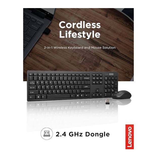 استمتع بتجربة لاسلكية متميزة، وراحة فائقة، ومتانة لا مثيل لها مع لوحة المفاتيح والماوس اللاسلكية المدمجة Lenovo 100 USB-A. يتحكم مُستقبل USB نانو واحد في كلٍّ من لوحة المفاتيح والماوس، مما يُبسط إعدادك دون المساس بالوظائف. ارتقِ بمساحة عملك، وأعد تعريف تجربة الكتابة والتنقل، واستمتع بتناغم مثالي بين الجمال والأداء. اختر Lenovo 100 Combo - لأن اللاسلكي أحيانًا يكون أفضل.