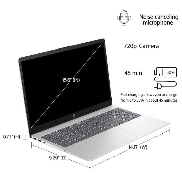 Finished in a sleek silver design, the HP 15.6" laptop combines performance, style, and practicality — all powered by Windows 11 for a modern and intuitive computing experience.